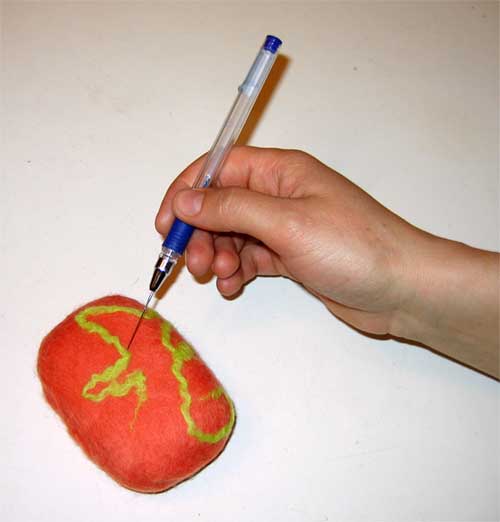 В наборе семь игл, все одинаковой толщины. Валять можно как сразу всеми иглами, так и одной или двумя, в зависимости от размера того, что валяете.